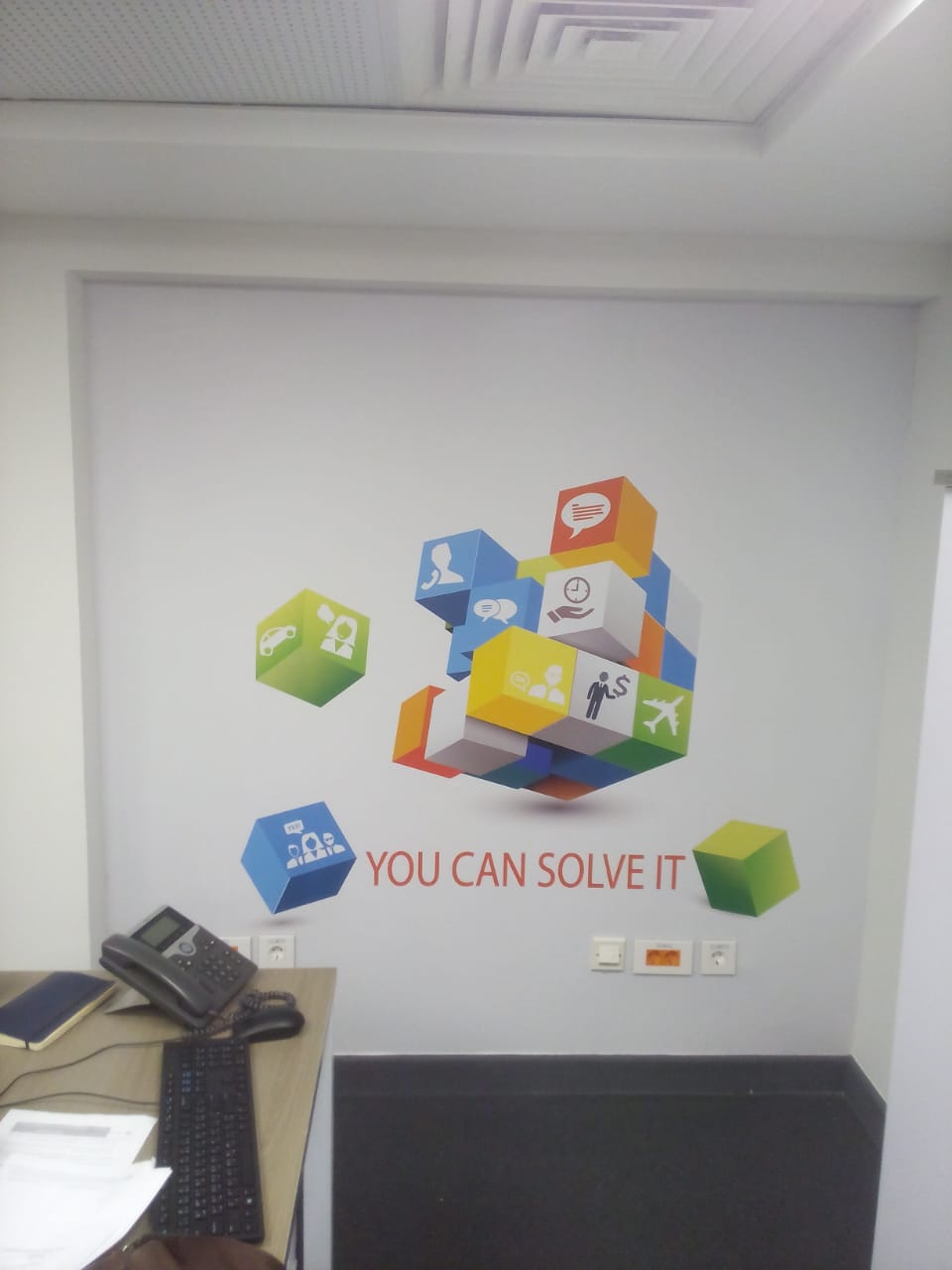 - The graphics on the walls are done using 3M 180CV and 3M Lamination 8520.